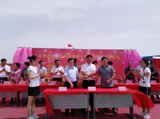 7月2日,近代物理所重离子辐照作物育种靖远科研基地在甘肃鼎鑫农业科技有限公司正式签约挂牌。近代物理所、兰州大学、甘肃农业大学、甘肃省医学科学研究院、白银市和靖远县政府、甘肃鼎鑫农业科技有限公司的领导和专家出席了共建基地签约揭牌仪式。近代物理所所长肖国青、甘肃农业大学副校长毕阳、兰州大学药学院副院长李加忠、靖远县县长刘力江、甘肃鼎鑫农业科技有限公司董事长李春生到会致辞,并为共建科研基地揭牌。