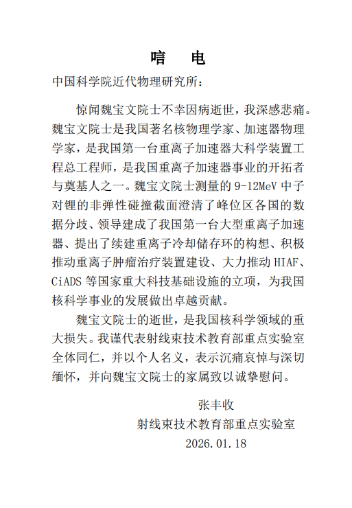 唁电---射线束技术教育部重点实验室