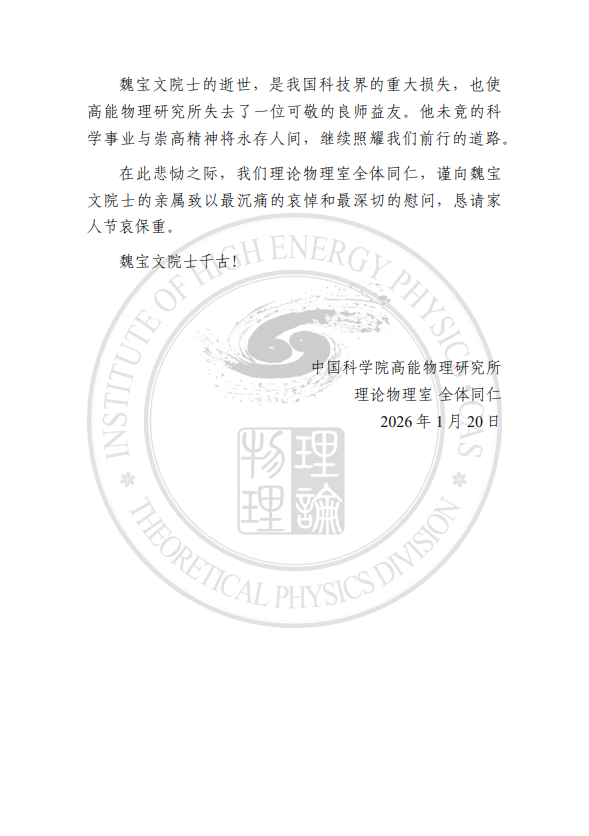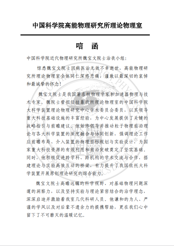 唁电----中国科学院高能物理研究所理论物理室
