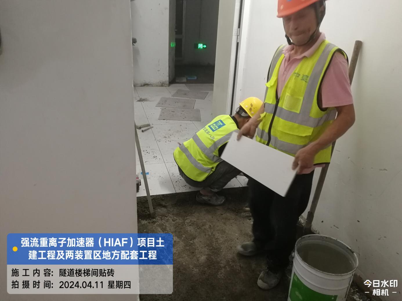 一、加速器隧道:直线隧道A1-1段顶板防水卷材铺设完成,室外楼梯口外墙油漆涂料完成;A1-2段地坪环氧漆完成;A1-9段地坪环氧漆完成。S环隧道排水沟环氧漆完成。H隧道排水沟环氧漆完成。高能综合终端2号楼梯间贴砖完成。