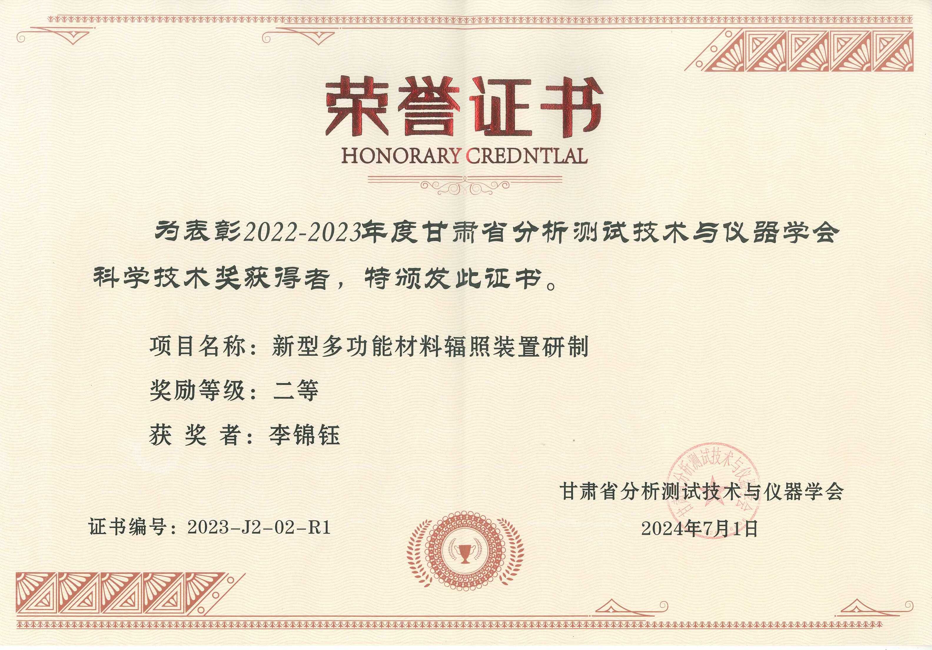 2022-2023年度甘肃省分析测试技术与仪器学会科学技术奖