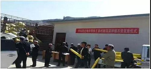 2018年中科院专家组对王泉村气候条件、土壤、海拔等地理条件进行了实地考察,并在王泉村试种甜高粱600亩,免费发放化肥(二胺)600袋,地膜600捆,甜高粱种子600公斤,并派遣专家实地指导种植,取得了良好的效果。配置了价值13万元的拖拉机、揉丝打包机等配套设备,为发展养殖业奠定了坚实的基础。