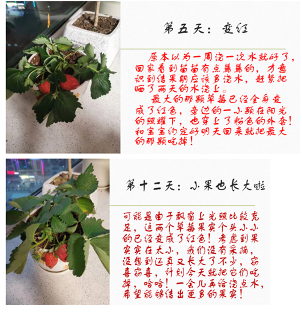 图5:来自赵晓莹老师的草莓成长日记摘选