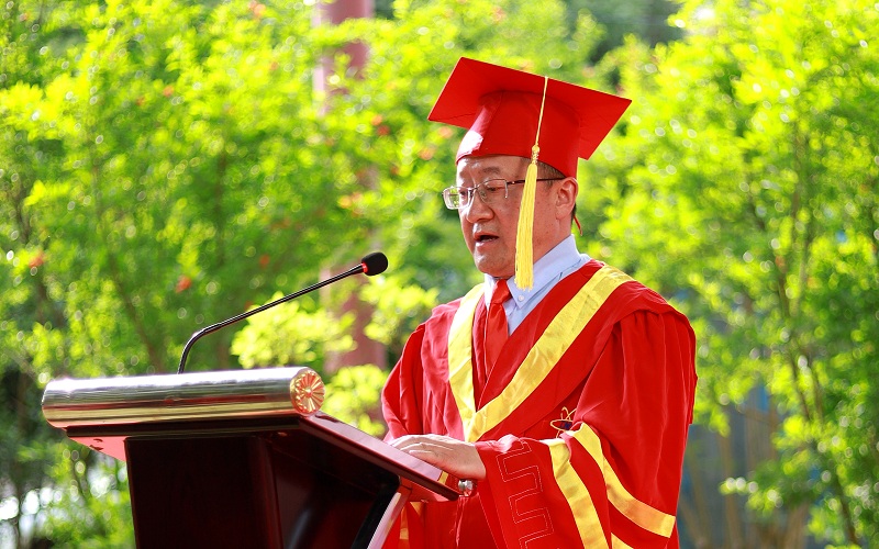 下午4时,毕业典礼在雄壮的国歌声中开始。所党委副书记、纪委书记袁平宣读了《近代物理研究所关于准予陈涵等9名研究生毕业的决定》和《近代物理研究所关于准予陈鹏辉等41名研究生毕业的决定》等文件。随后,赵红卫在致辞中代表研究所向圆满完成学业的全体毕业生表示热烈的祝贺和诚挚的祝福。在毕业生即将踏上新的人生征程之际,他也给同学们送出了临别寄语,希望毕业生们能够胸怀国家,有所担当,以足够的自信勇敢地接受挑战,将个人前途融入国家发展的伟业之中。面对随之而来的挑战和机遇,能够用长远的眼光发现问题,用创新的思维和开拓的精神解决问题。随后,在高昂奋进的音乐中,袁平研究员、马新文研究员、原有进研究员和李文建研究员代表导师为毕业生颁发毕业证书,赵红卫院士为毕业生拨苏正冠,并握手祝福。