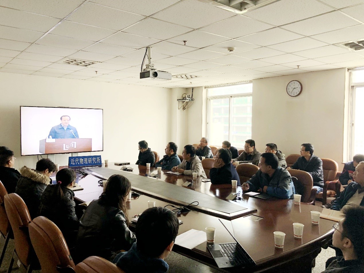 10月11日,中科院党建工作领导小组组织召开南仁东先进事迹报告会,近代物理所组织党总支、支部书记、学术带头人、青年科研人员代表、学生代表等观看并学习了南仁东先生先进事迹。