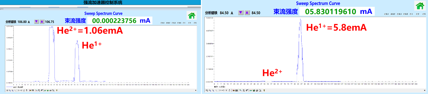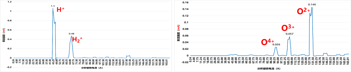代表性离子指标:He1+=5.8emA、He2+=1.1emA、H+=1.37emA、H2+=1.30emA、O2+=164eµA、 O5+=12.1eµA、Xe11+=11.5eµA、Xe14+=3eµA